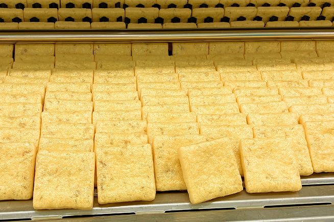 安全な大豆と朝倉の良質な水で油揚げを製造し、経験と工夫を重ねた結果、業務用味付け油揚げで全国トップシェアとなりました。
