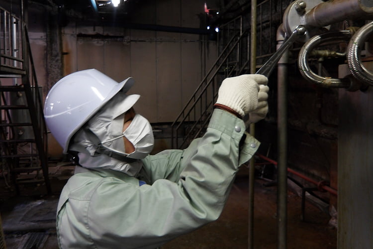 私の所属する工務課では、日々の生産設備のトラブル対応、保全、改善を行い生産効率向上に努めております。