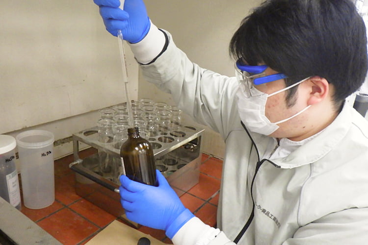 大豆の品種選定や成分分析、油揚げの品質評価を行い、生産に適した品種を調査しています。新しい油揚げ開発に向けた基礎研究にも取り組んでいます。